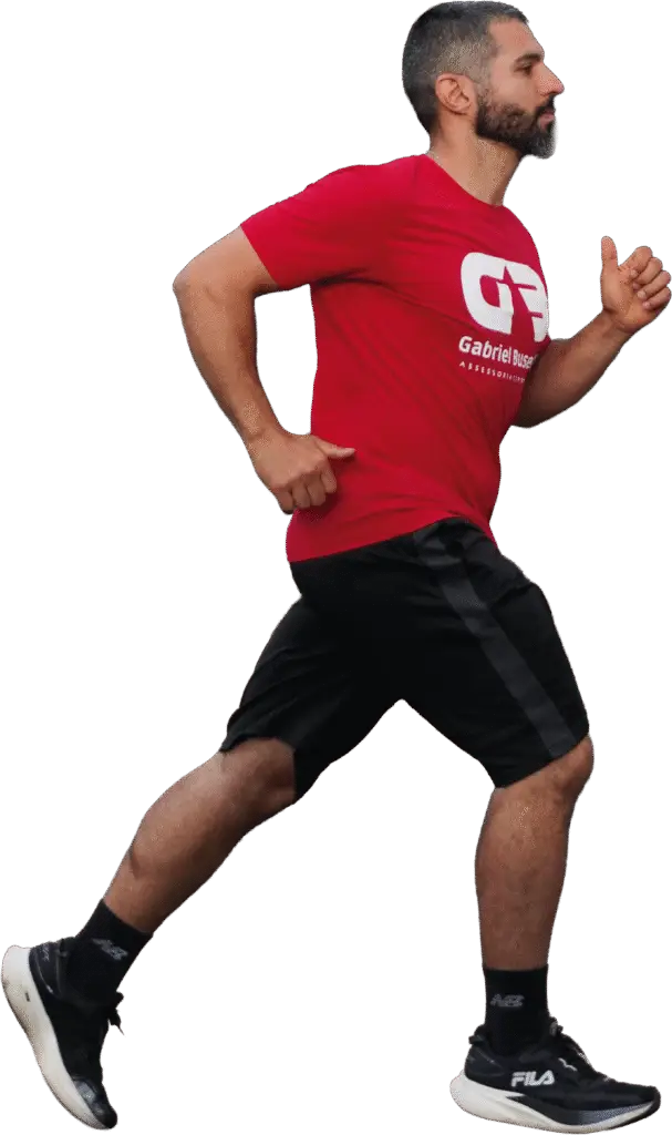 Essa virada aconteceu quando um de seus alunos, maratonista, travou o joelho por falta de preparo. Com o fortalecimento adequado, voltou a correr sem dores. Naquele momento, Gabriel percebeu: correr exige muito mais que resistência. Exige estratégia. Desde então, ele treina corredores no Brasil e nos EUA com planilhas personalizadas e acompanhamento próximo, respeitando o ritmo de cada fase. Porque evolução real só acontece com planejamento.